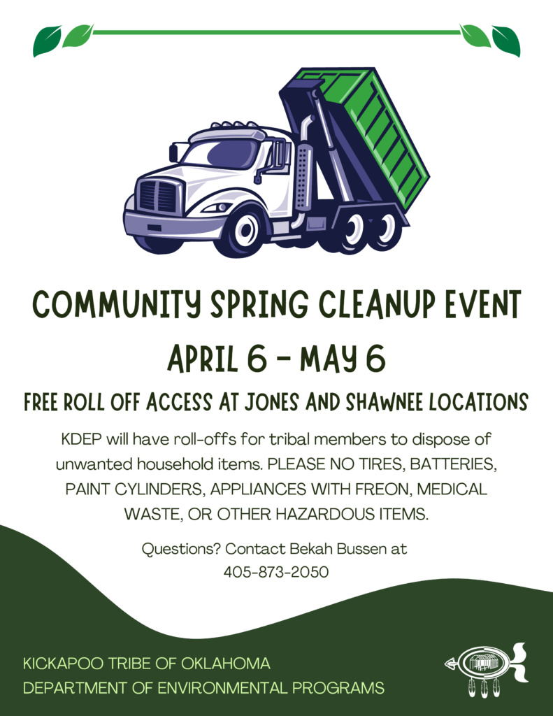 COMMUNITY SPRING CLEANUP EVENT Posted on April 1, 2026April 1, 2026 by okkthc APRIL 6 – MAY 6 • FREE ROLL OFF ACCESS AT JONES AND SHAWNEE LOCATIONS • See Flyer for Details Share this: Print (Opens in new window) Print