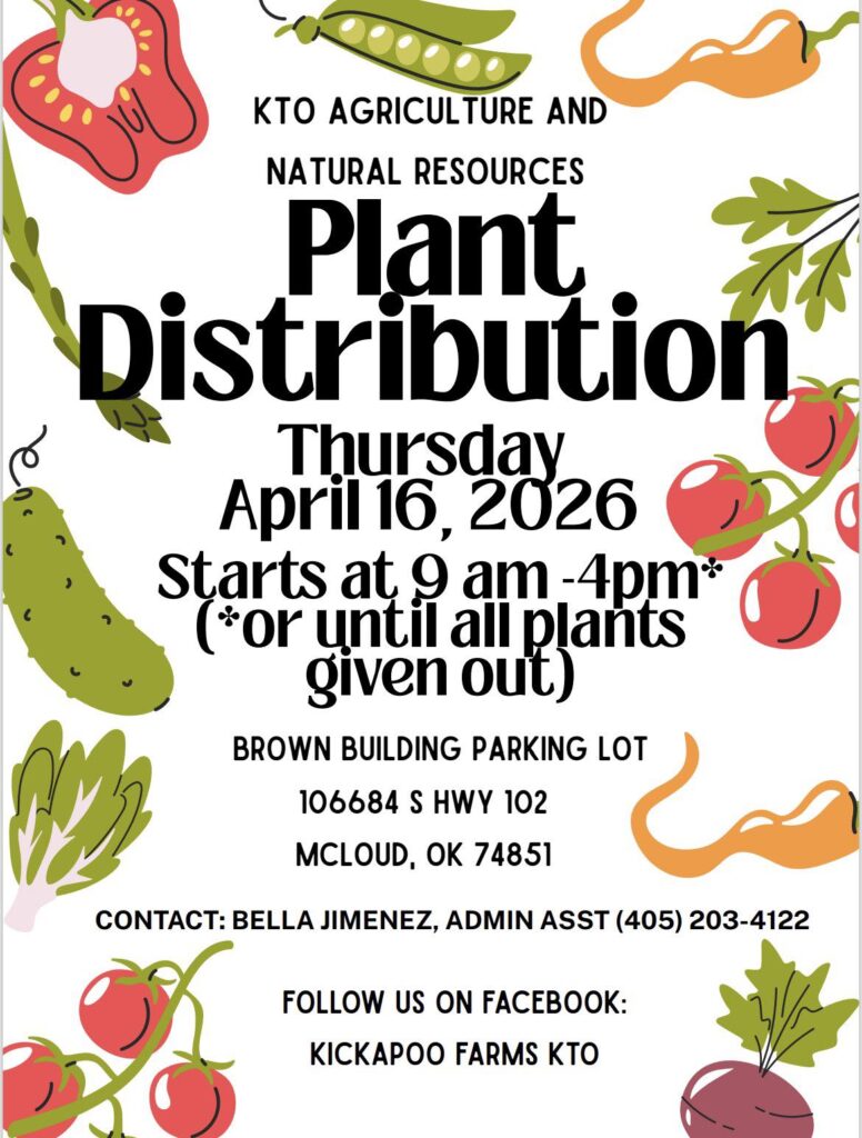 KTO Farms Plant Distribution Posted on April 13, 2026April 13, 2026 by okkthc Thursday • April 16, 2026 • Starts at 9 am -4pm* (or until all plants given out) BROWN BUILDING PARKING LOT • 106684 S HWY 102 • MCLOUD, OK 74851 Screenshot Share this: Print (Opens in new window) Print